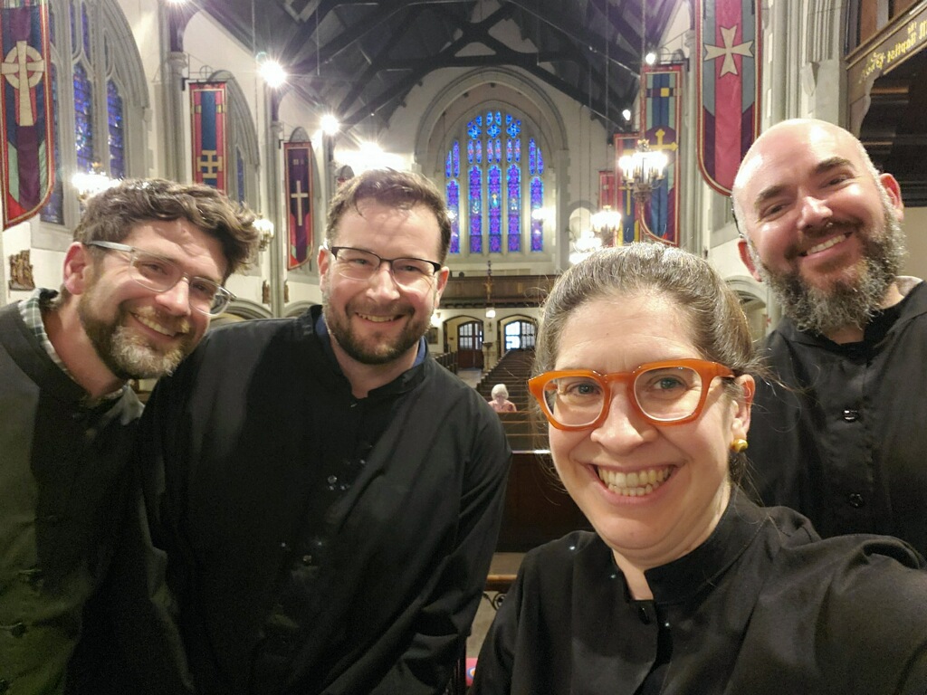Some highlights of my career as a professor are leading an interdisciplinary performance by composers of underrepresented groups at Western Michigan University as a part of Kimberly Dunn-Adams’ Choir for Good initiative, which brought attention to community services for homeless and displaced people; culminating a musicianship sequence at the University of Notre Dame with student aural transcriptions of the first page of J.S. Bach’s Ricercare a 6 from Musical Offering and hearing reports about aural characteristics of twentieth-century musical examples; leading a cohort of young singers to Carnegie Hall to join with others from around the continent to perform with Chanticleer’s M.D.E. Matt Oltman in DCINY’s Of Life and Liberty; arranging the French carol March of the Kings for brass band, percussion, and TTBB chorus for premiere at Christmas at Augustana; and, most of all, seeing my students succeed in their endeavors.